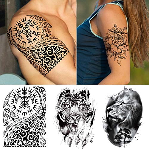 Tasroi 42 Sheets Black Large Temporary Tattoos For Men Tribal Maori Tiger Lion Pray Nun Women Arm Flower Tattoo Temporary Fake Stars Words Letters Tattoos For Adults Kids Face Chest Neck Tatoo